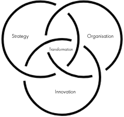 It is based on the premise that “Transformation occurs at the intersection of strategy, organisation and innovation”.